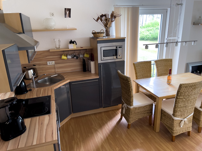 Die moderne und hochwertig ausgestattete Wohnung mit eigener Küche (mit Herd, Backofen, Mikrowelle und Kühlschrank), großem Wohn-Ess-Bereich sowie 2 separaten Schlafzimmern und einem Bad mit großer Dusche. Ihre Ferienwohnung lichtdurchflutet und hat Zugang zu einem großen Balkon mit Blick in den Garten und auf das Meer. Genießen Sie gemeinsame Abende bei einem guten Wein oder entspannen Sie auf dem Sofa vor dem großen Flat-Screen-TV. Hier finden Sie mit bis zu 6 Personen entspannt Platz und können am angrenzenden Strand Sonne tanken oder auch an regnerischen Tagen die Ruhe in der Ferienwohnung genießen. WLAN ist vorhanden.
